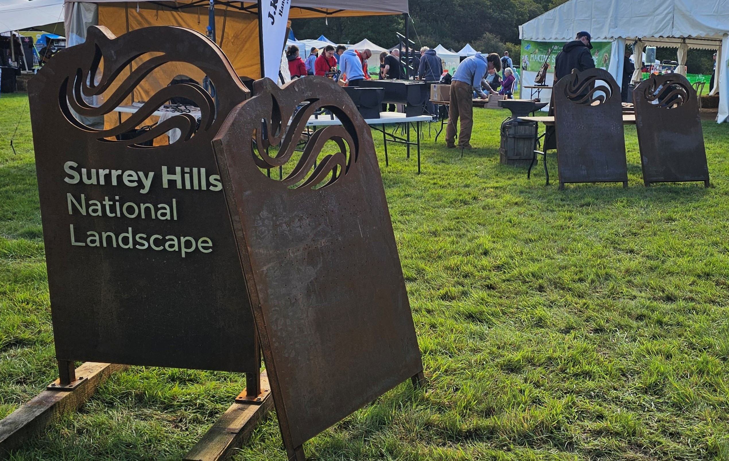 We took the signs to the Surrey Hills Wood Fair, where visitors were offered an opportunity to express their views about them, where they should be located, and help to bolt-in some letters to them.